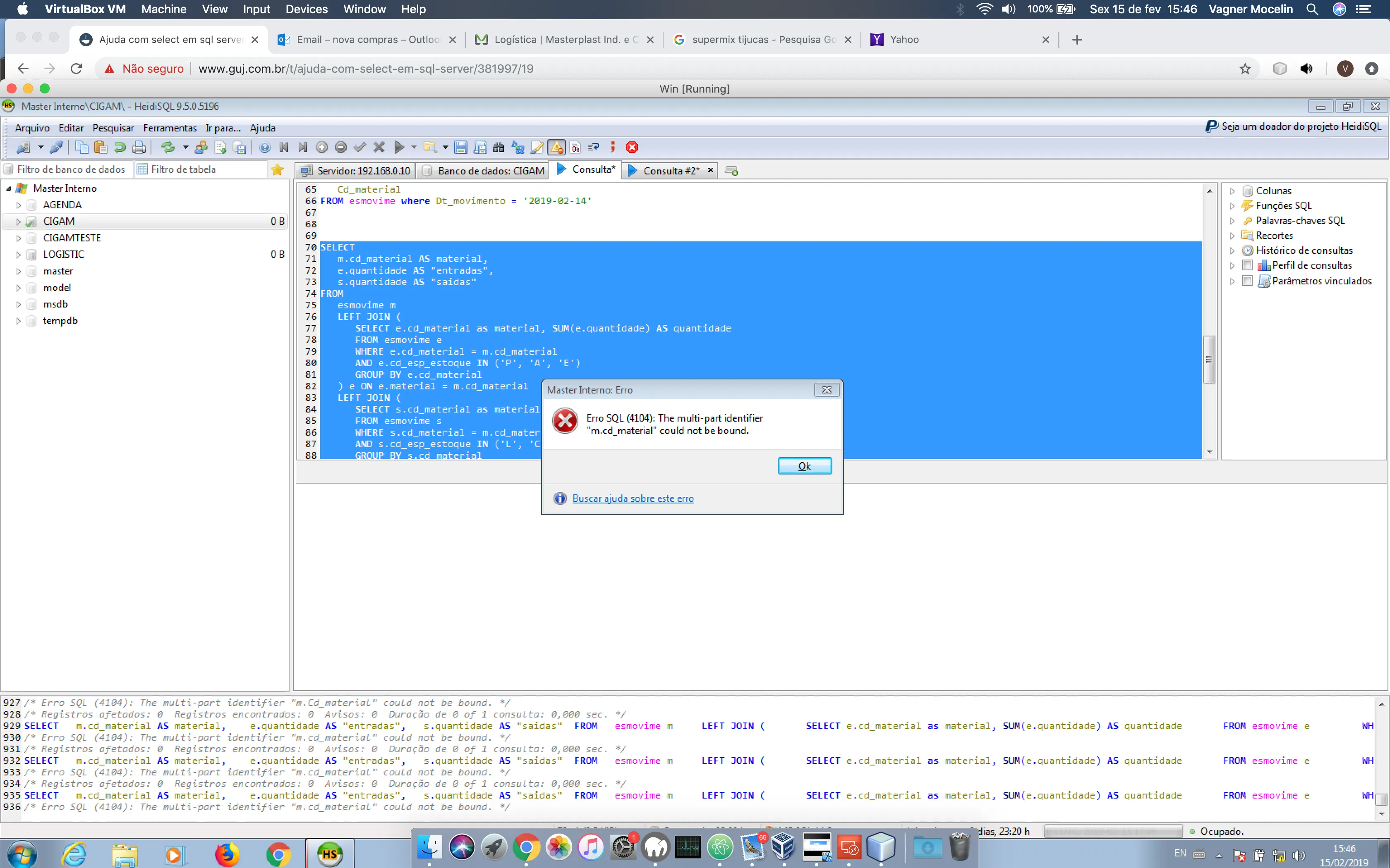 mesmo erro, que estranho, se eu fizer apenas select cd_material from esmovime ai vem normal
