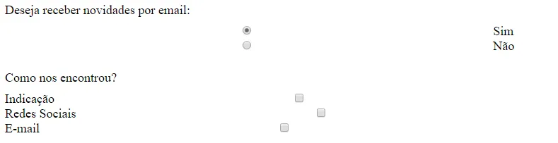 <label><input type="radio" name="novidade" /> Não </label>