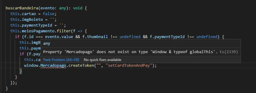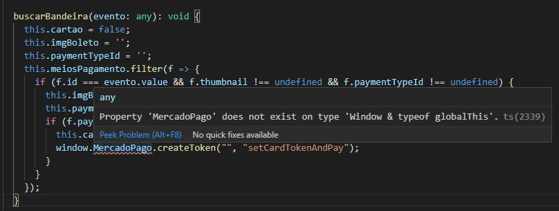 (window as any).Mercadopago.setPublishableKey(“YOUR_PUBLIC_KEY”);