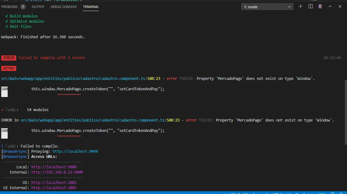 Ao dar npm start, mostra o erro
