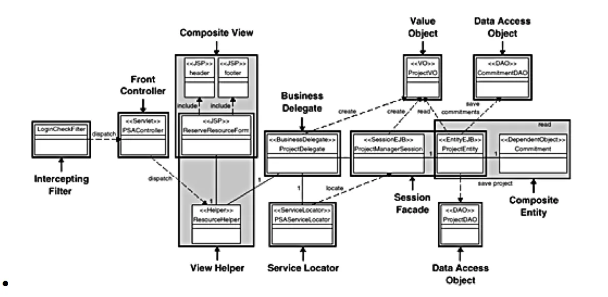 Seguindo uma estrutura como proposta no livro Core J2EE (figura a baixo).
