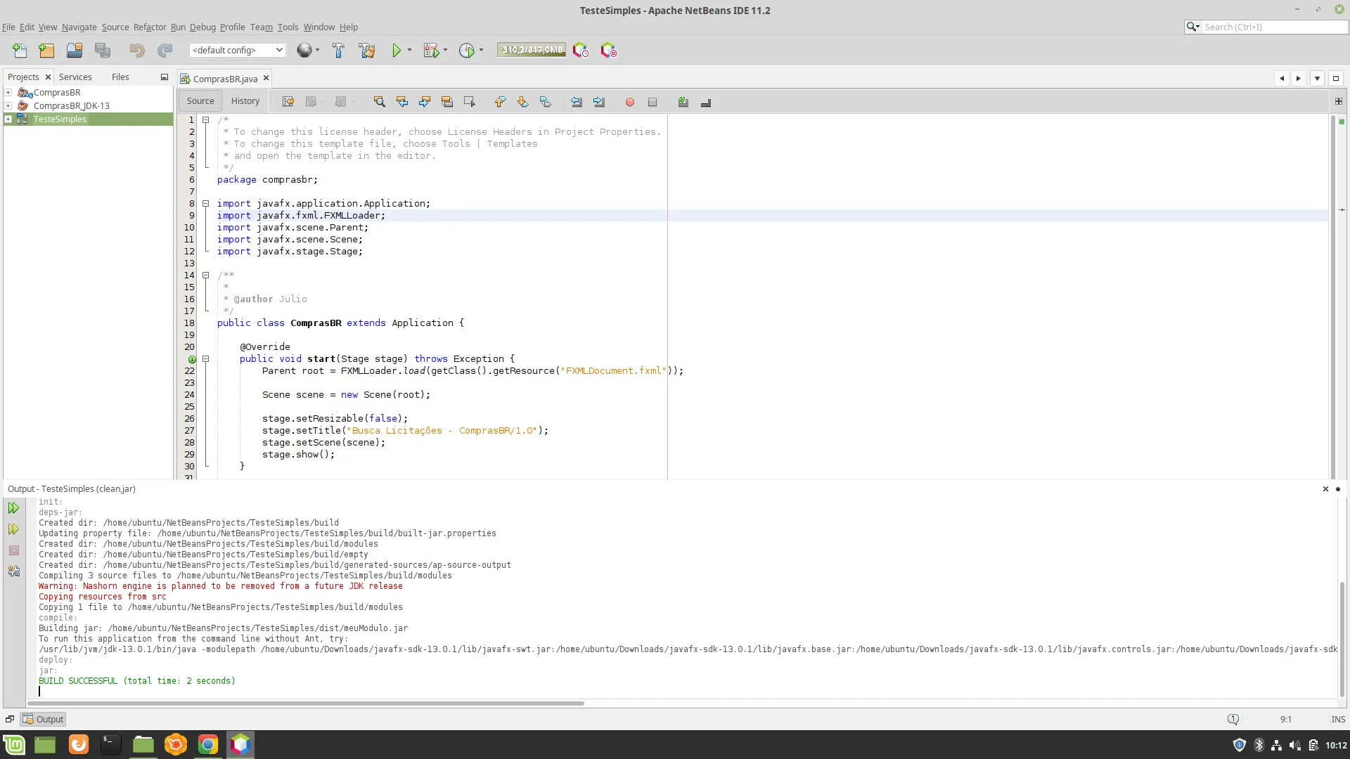 Olá, sou novo no mundo da programação e estou desenvolvendo uma aplicação em JavaFX 13, o JavaFX não vem mais com as novas versões do JDK e tive que baixar a parte e configurar o NetBeans e funcionou perfeito, o problema é que quando gera o arquivo .jar não funciona e o seguinte erro: