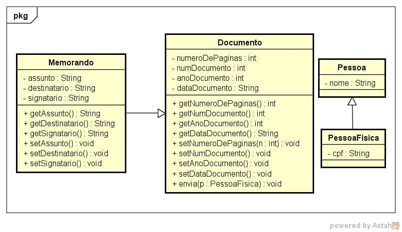 classe, crie um objeto da classe Memorando e adicione valores aos seus atributos. Crie um objeto