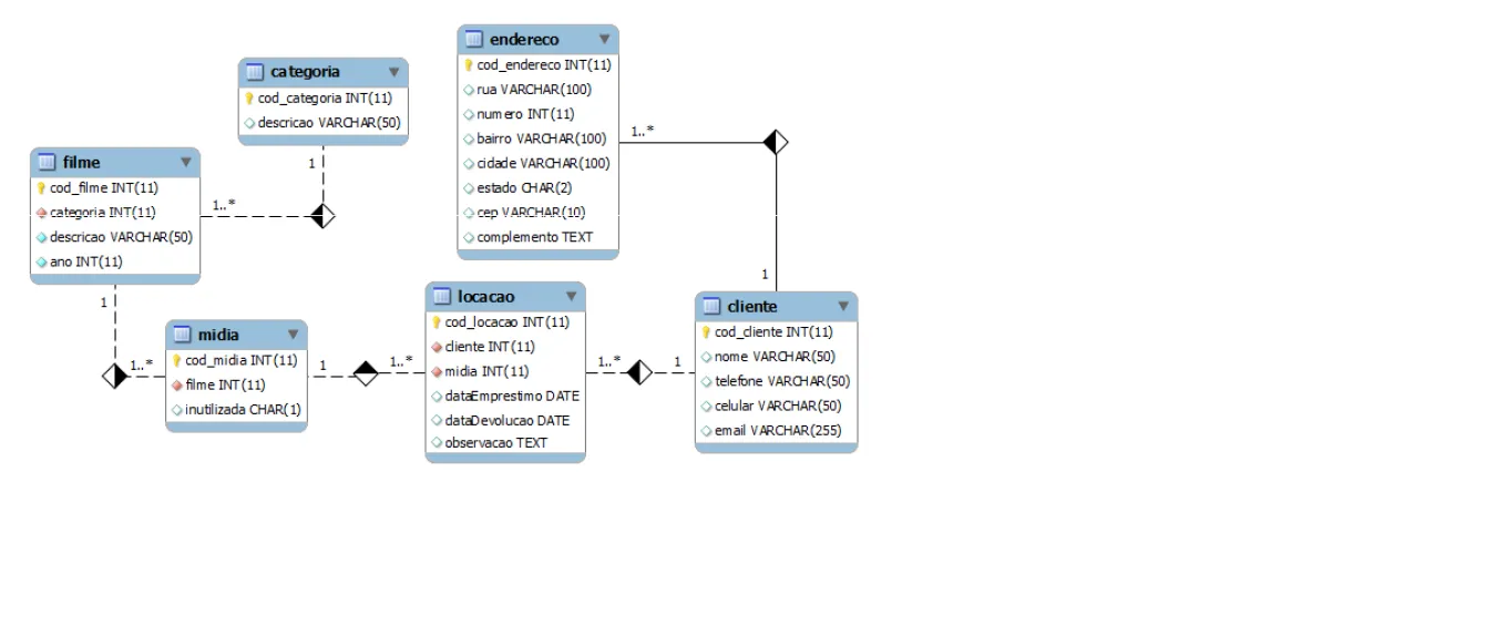 Repare nesta imagem abaixo, as fk estão em vermelho e as pk estão em amarelo, a “ligação” feita entre a tabela cliente e locação é o necessário para dizer que em um banco relacional minha locação pode conter 1 ou mais clientes, Porque minha tabela locacao possui uma fk “cliente”.