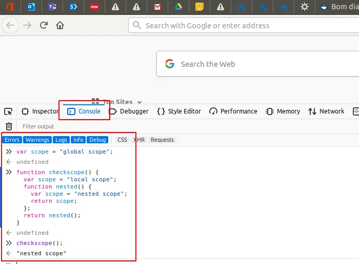 Boa tarde, no console eu não consegui. O código que eu postei acima gera algum resultado no navegador (se for editado no notepad++)? Não aparece nada. Valeu!