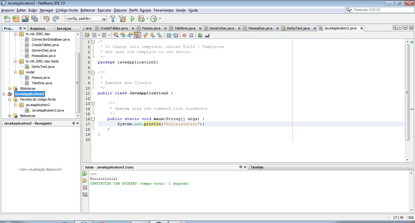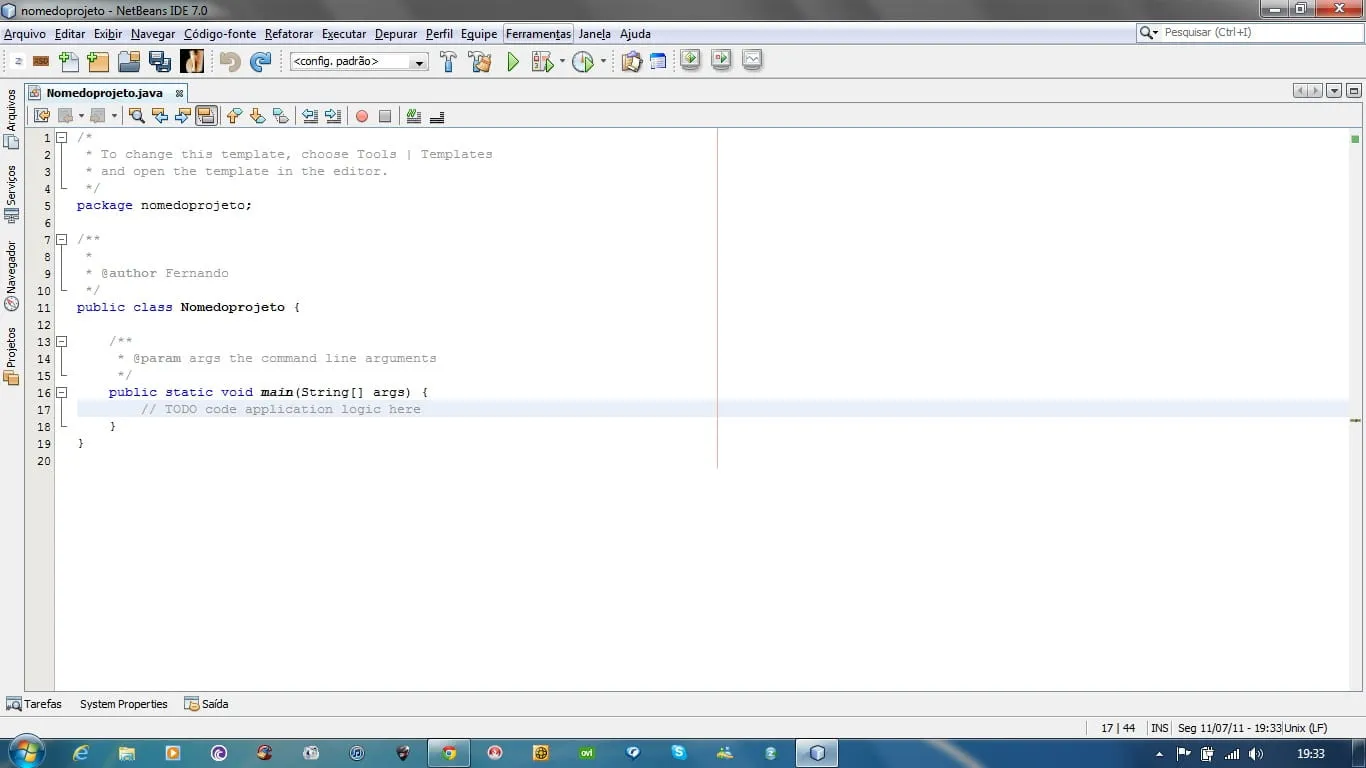Porém no netbeans ele não executa por causa do package que não foi criado. Se você criar um projeto do zero no Netbeans, você pode verificar que ele cria essa linha