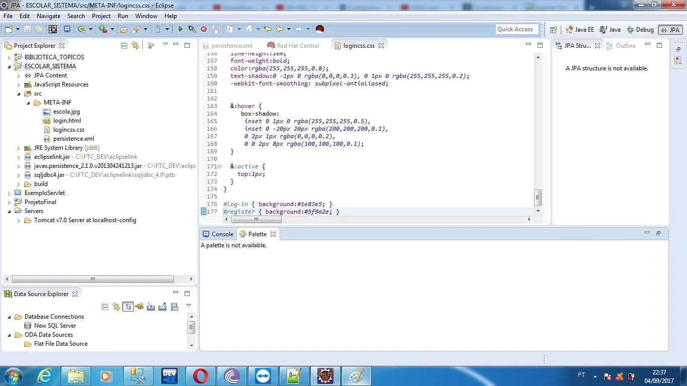 ADVERTÊNCIA: [SetPropertiesRule]{Server/Service/Engine/Host/Context} Setting property ‘source’ to ‘org.eclipse.jst.jee.server:SISTEMA_ESCOLAR’ did not find a matching property.