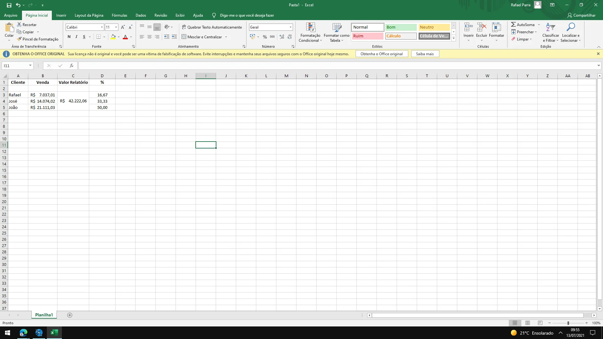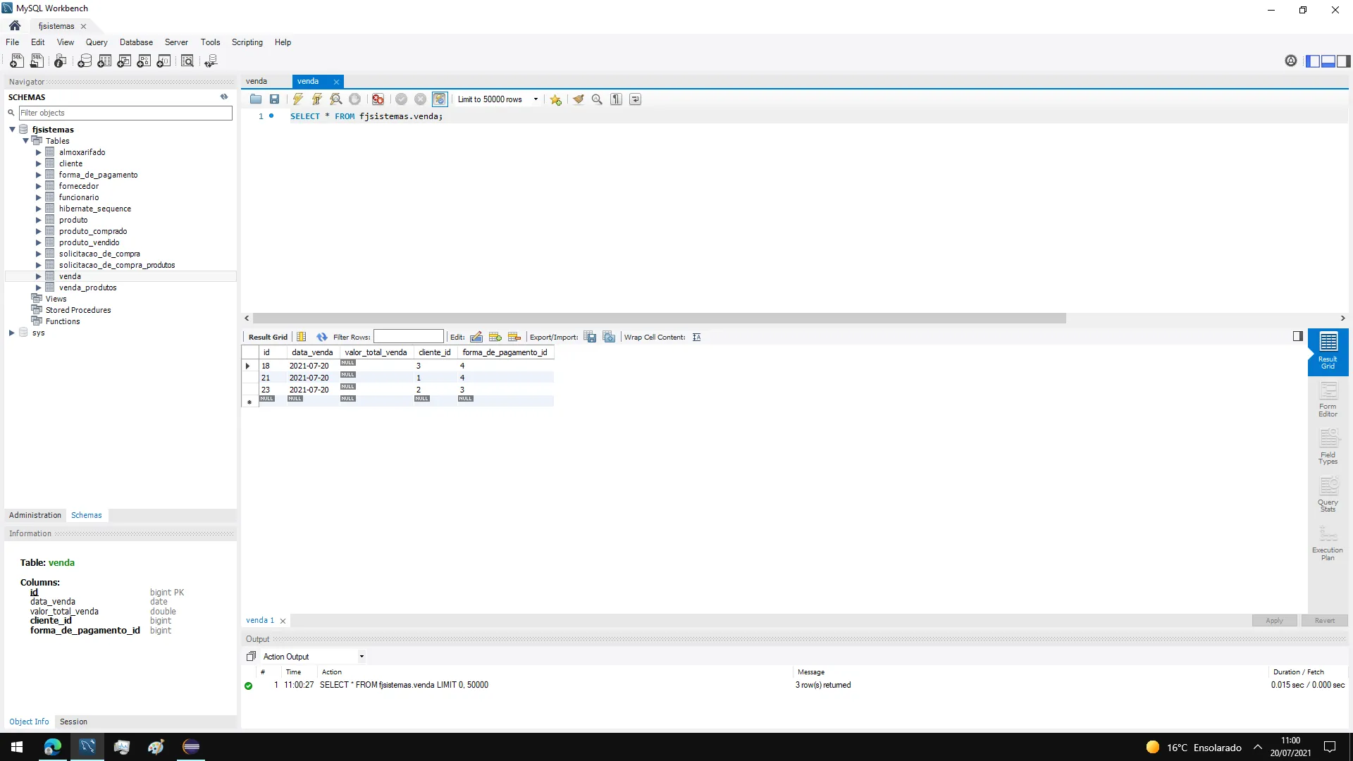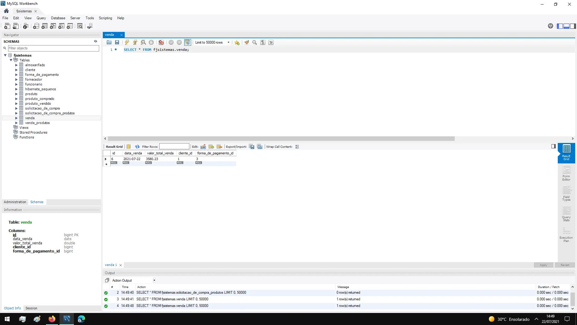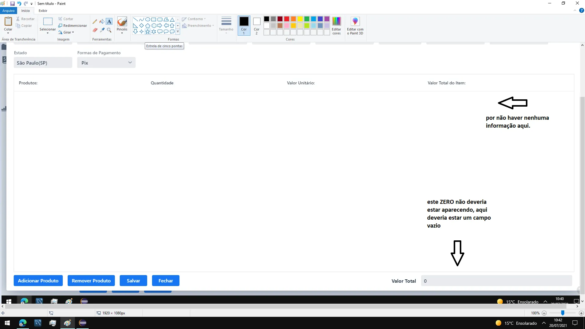 quando clico em venda: