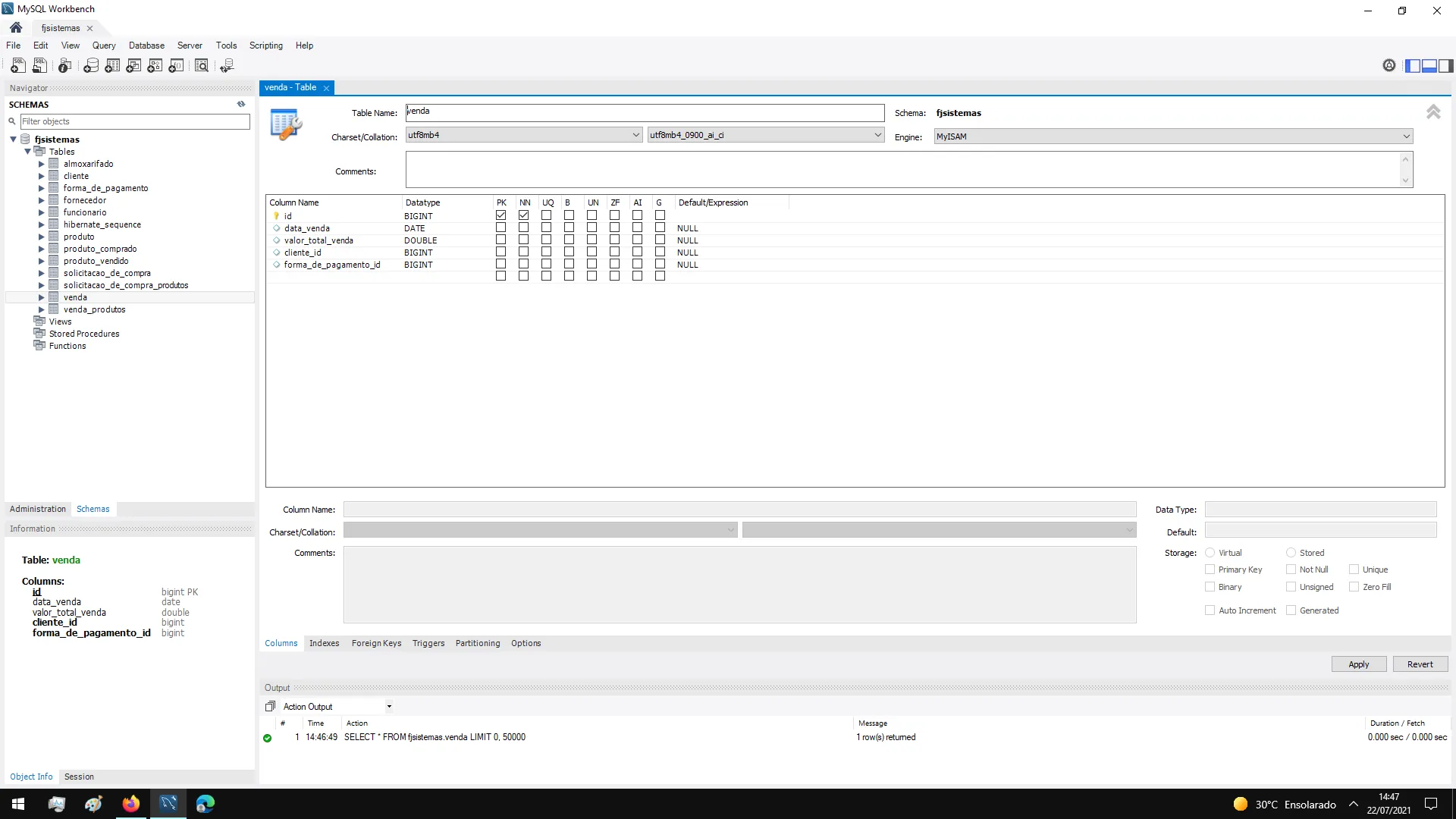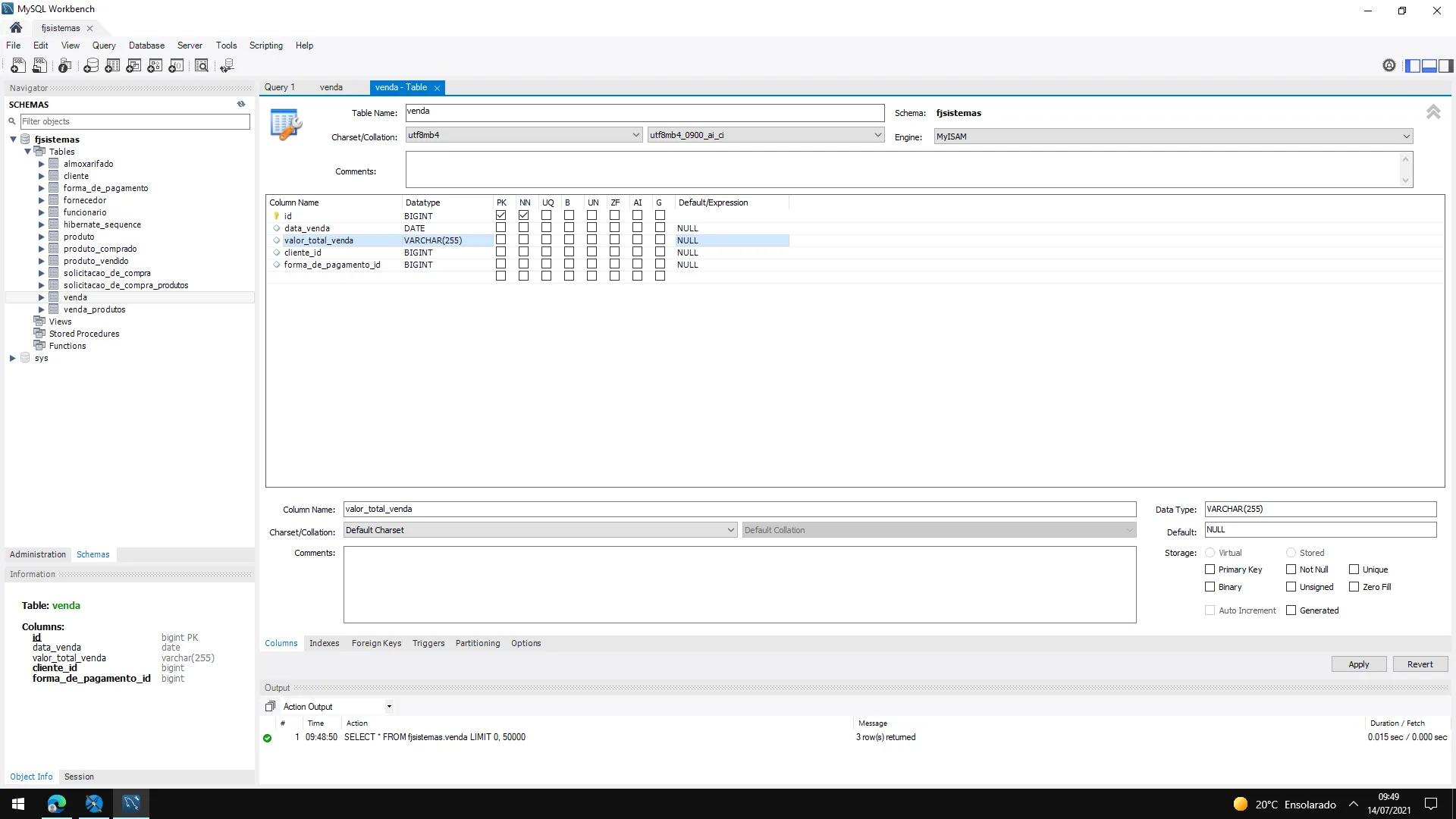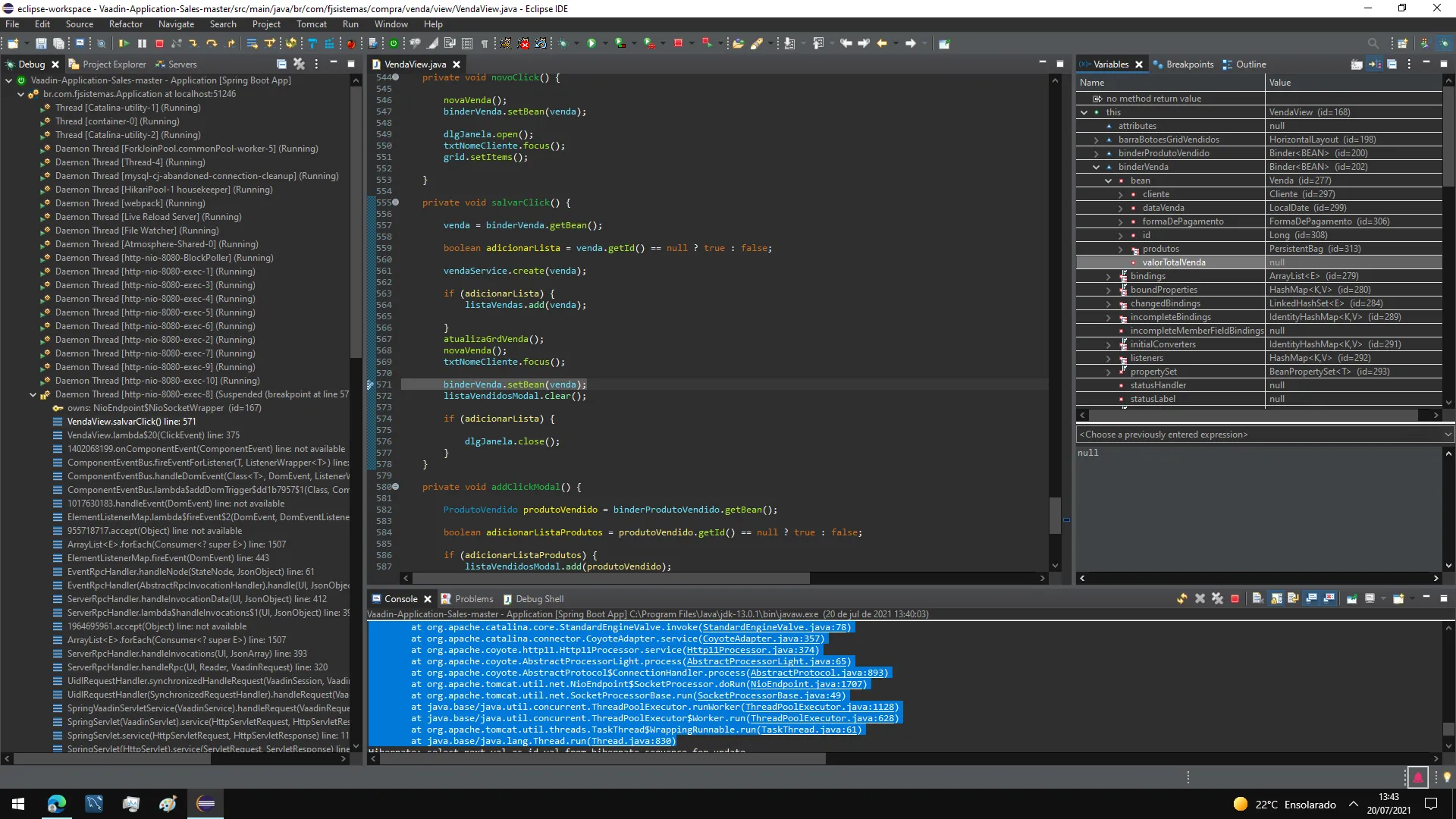 Verifiquei no Mysql que a variavel valorTotalVenda que antes estava como VARCHAR passou para DOUBLE