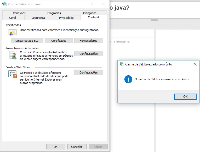 Opções da Internet -> Conteúdo -> Limpar estado de SSL.