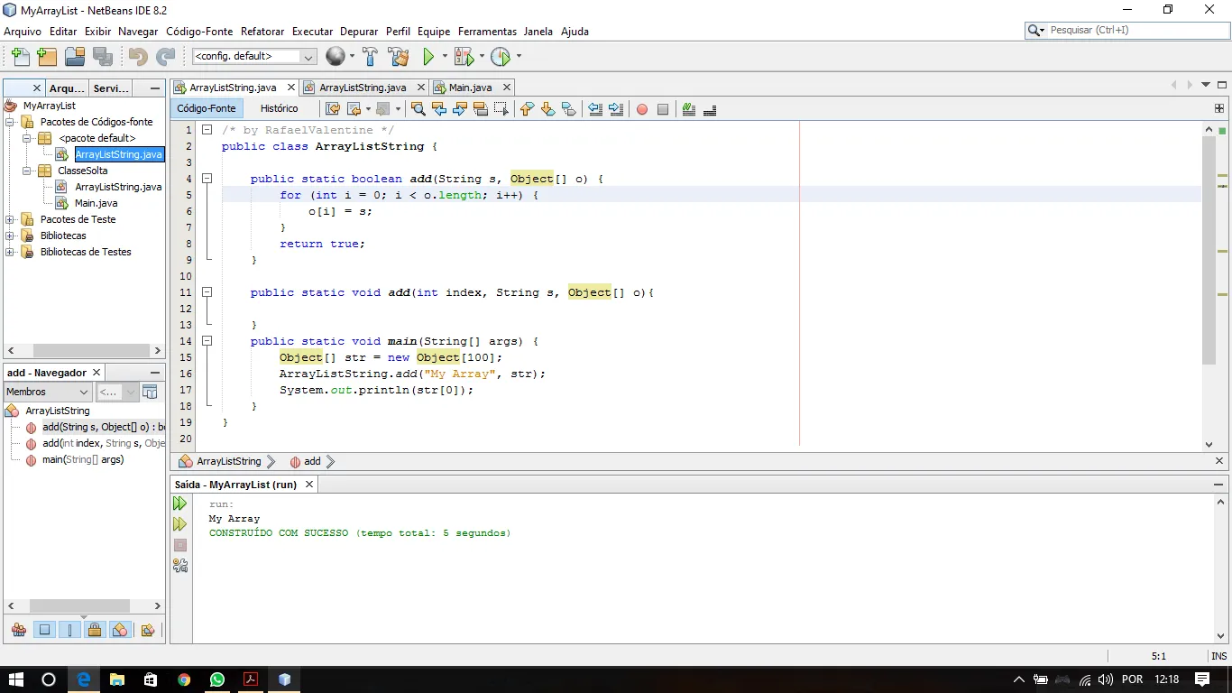 J-menezes, eu consegui implementar o método boolean add do ArrayList aqui usando o object. Obrigado pela dica ai. Conforme for aparecendo mais dúvidas, neste mesmo tópico, eu continuo a perguntar.