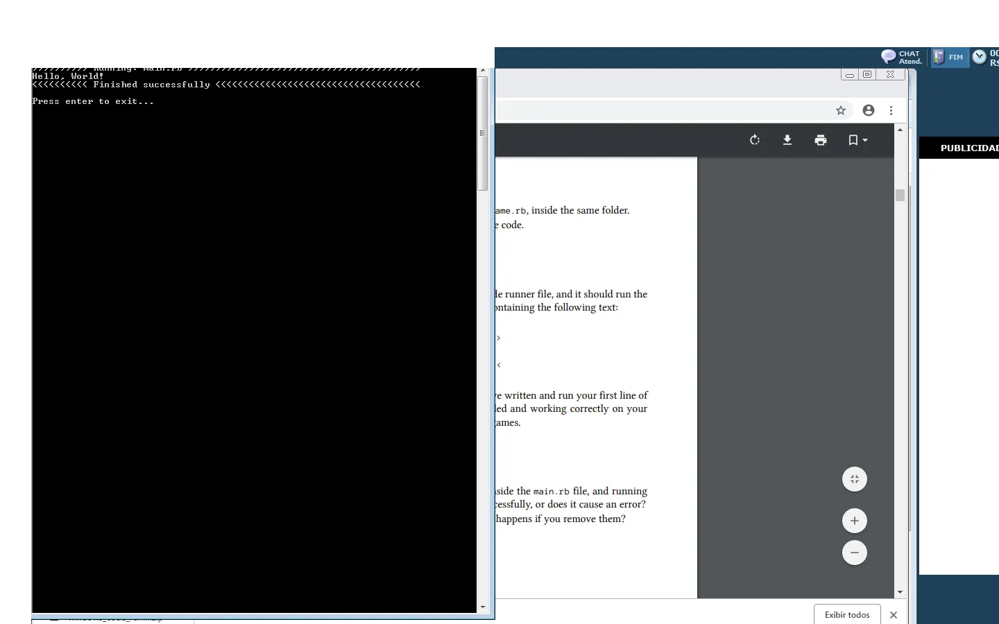 O livro Progarmming of Beginners diz que se eu ver o seguinte texto, eu consegui escrever e executar minha primeira linha de código Ruby: