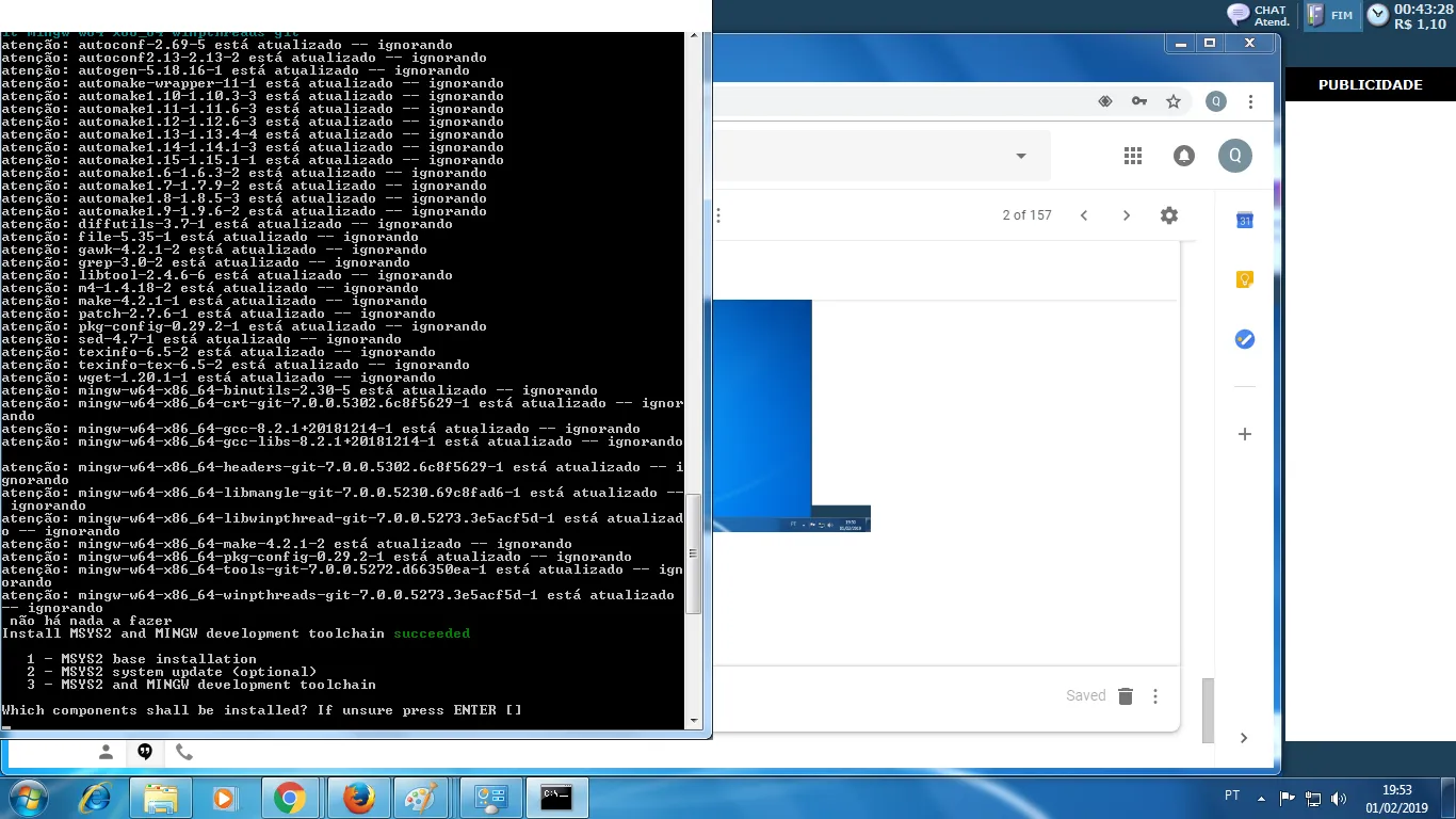 Eu tentei instalar o Ruby no Windows 7 Professional 64 bits, a seguinte captura de tela mostra isto: