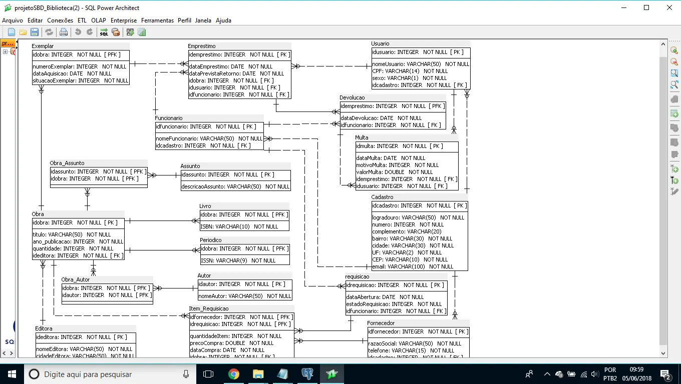 –Tabela EXEMPLAR (OBS: coluna situacaoexemplar (1=Disponível 2=Emprestado))