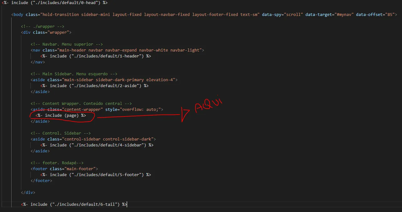 E aqui está o código HTML do meu conteúdo central que fica dentro da página admin: