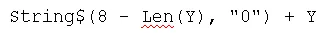 Y.PadLeft(8,'0')