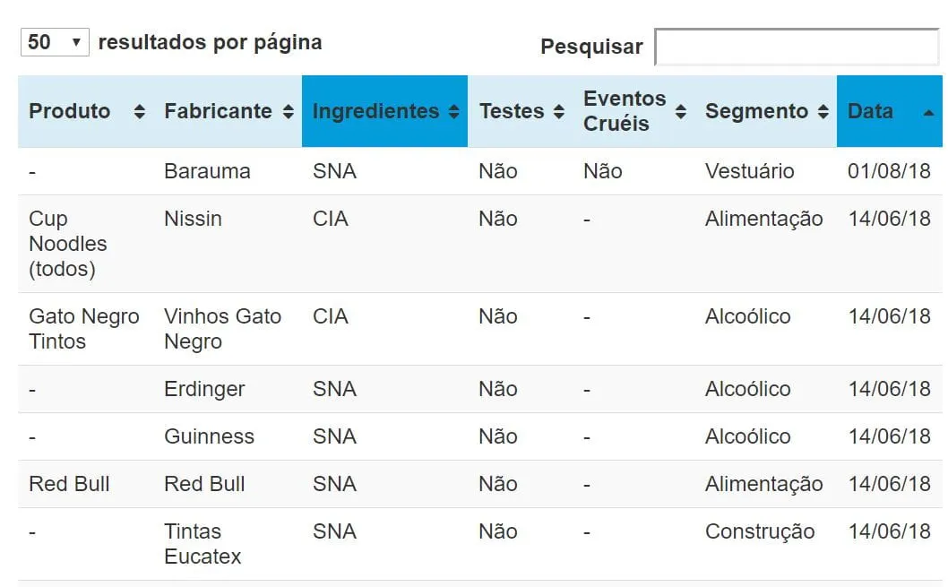 No site tem vários exemplos de tabelas, como por exemplo: