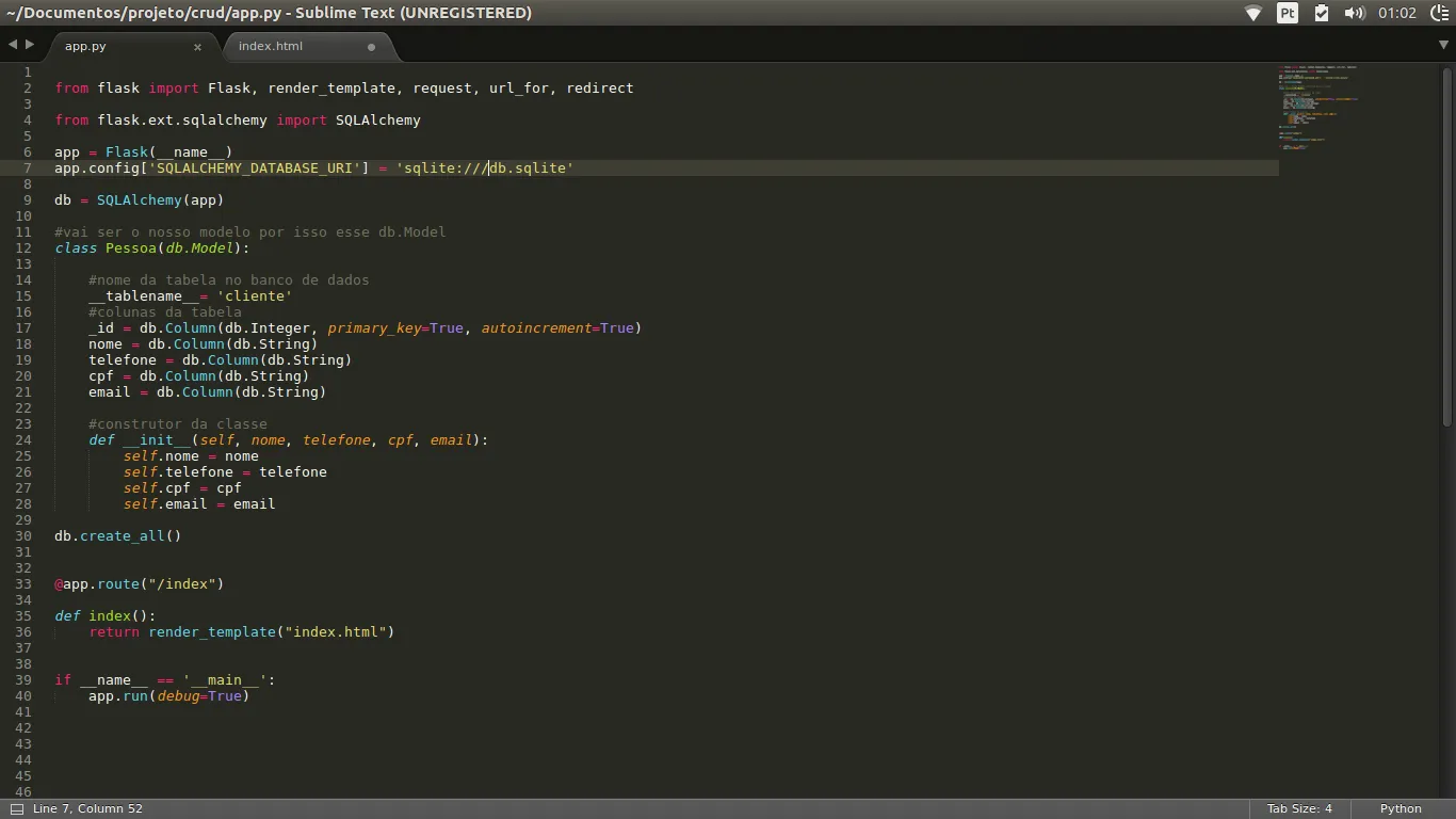 Galera, estou aprendendo a usar o flask e estou fazendo um crud para aprender a utilizar o banco e etc, mas quando eu rodo a aplicação ela dá o erro “Not found” e fala que a url que foi passada não foi encontrada, eu tenho esse código abaixo. Alguém sabe o que pode ser?