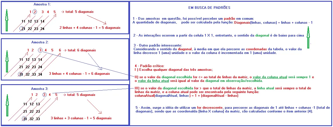 for (int diagonais = 0; diagonais < linhas + colunas - 1; diagonais++) {