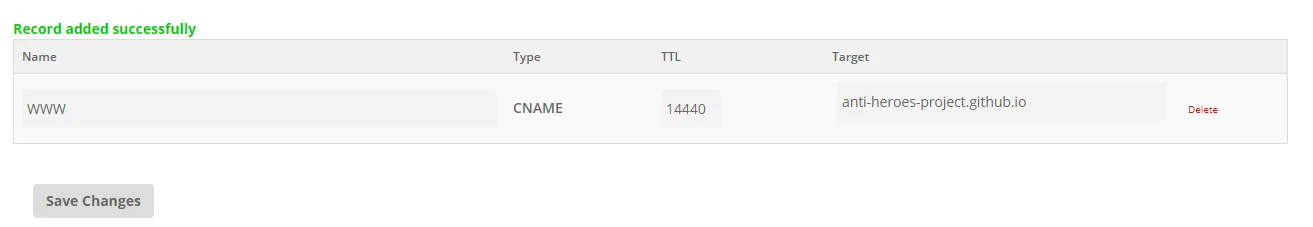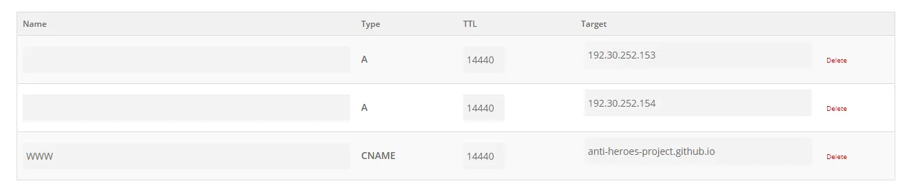 Olá, eu estou tentando configurar um domínio personalisado em um site no github pages. Adicionei o domínio, criei o arquivo CNAME e configurei os records, mas não está funcionando o site pelo domínio e eu vejo essa mensagem nas configurações do meu repositório: