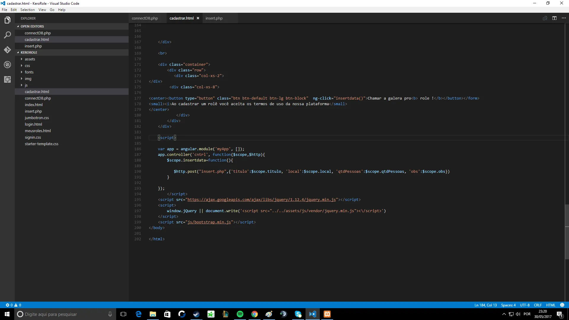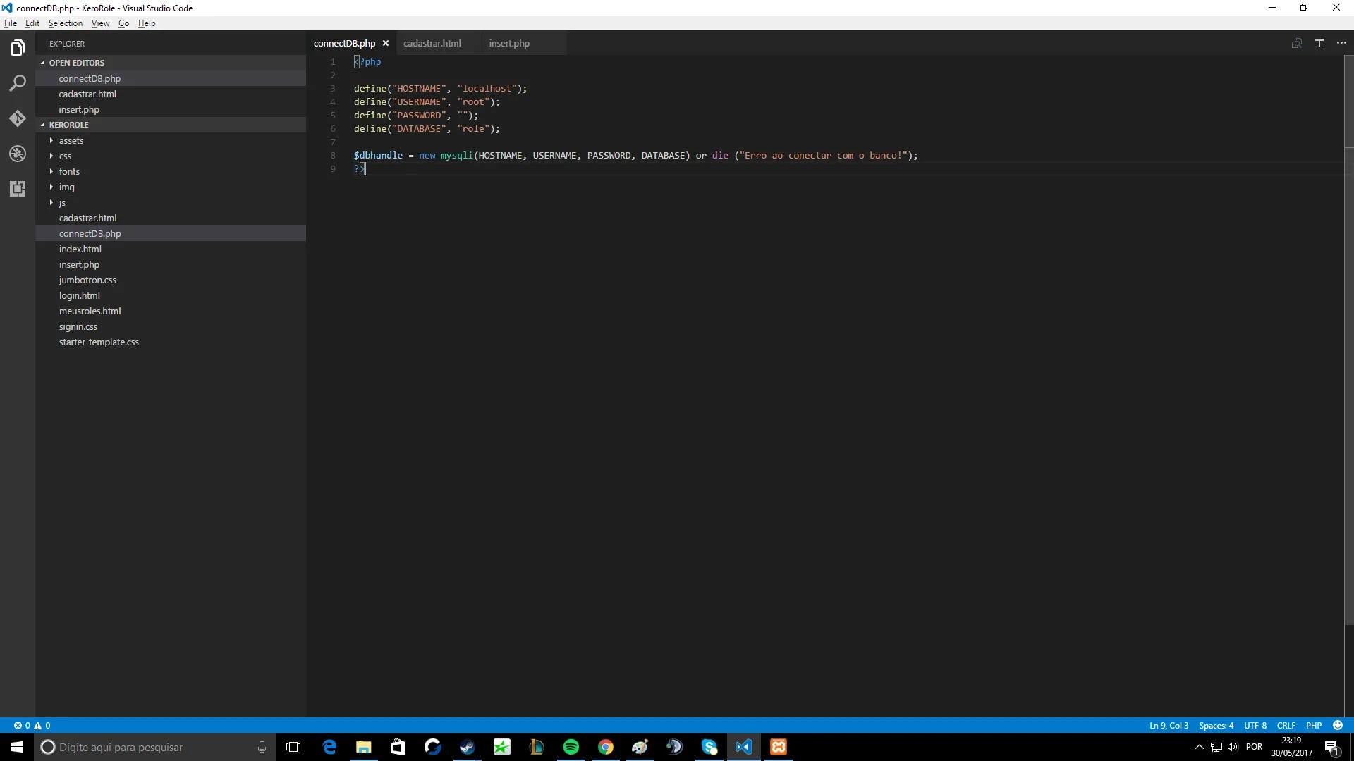 Pessoal estou com problemas na hora de inserir dados utilizando php backend. Ao clicar no botão não ocorre nenhuma ação.