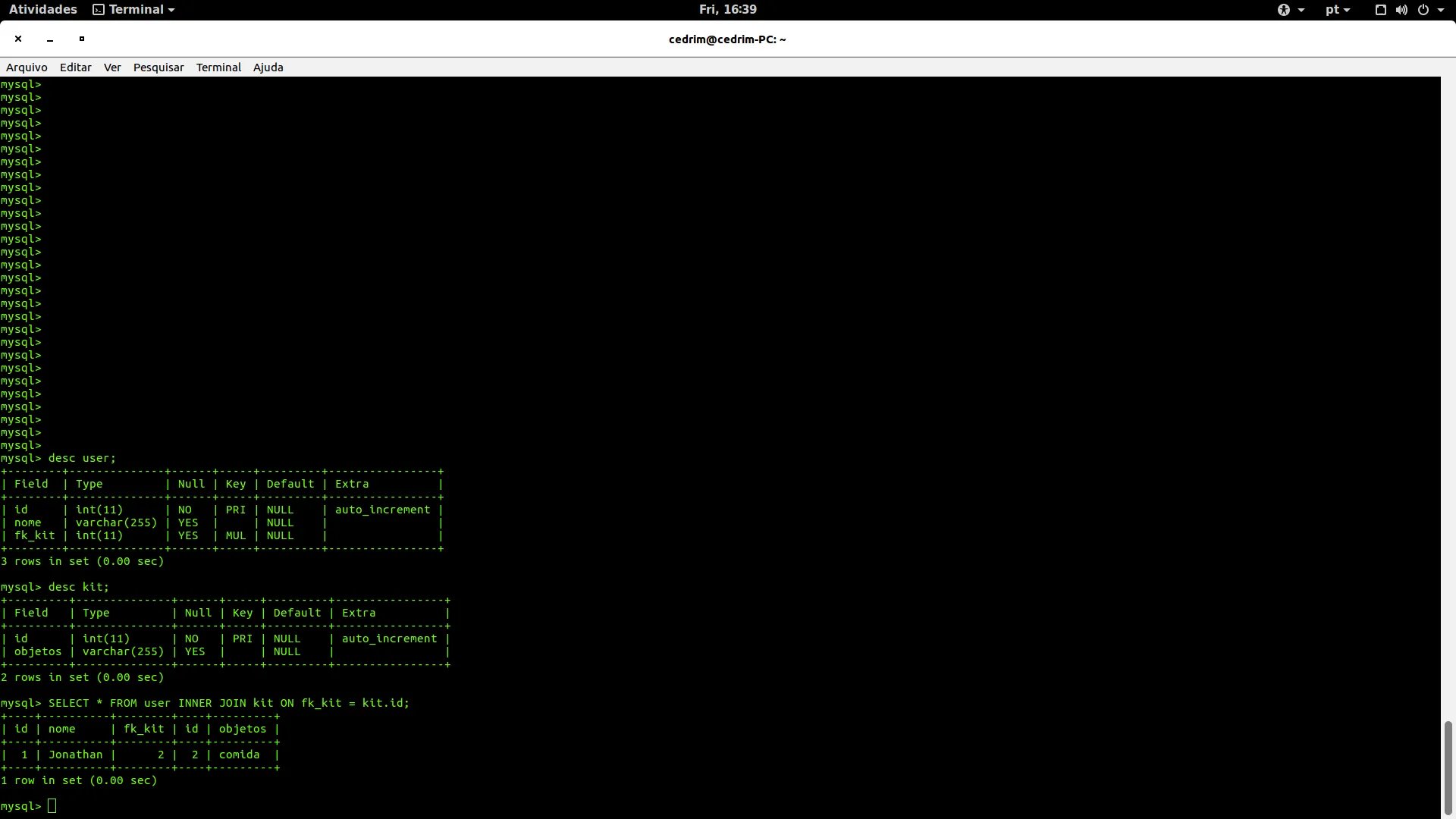 Acabei errando quanto ao relacionamento, o correto seria “fusão de tabelas”.