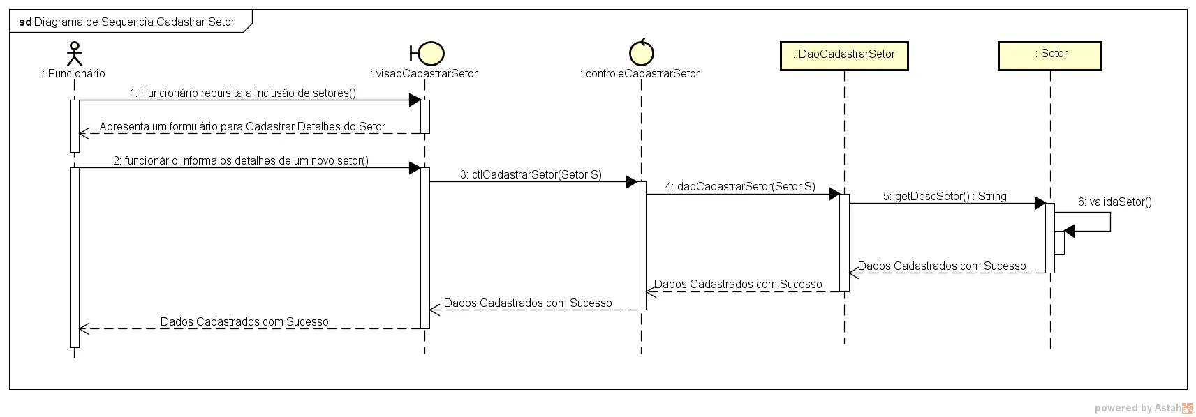 Tenho um diagrama de sequencia Cadastrar Setor e queria saber o que vem depois da camada controle se e a camada Dao (Data Access Object) ou model.