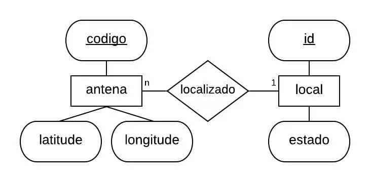 • Considerando a modelagem física que você fez o diagrama ER seria,1 entidade (antena) associada a 4 atributos (id,latitude, longitude e estado) sem relacionamentos ?