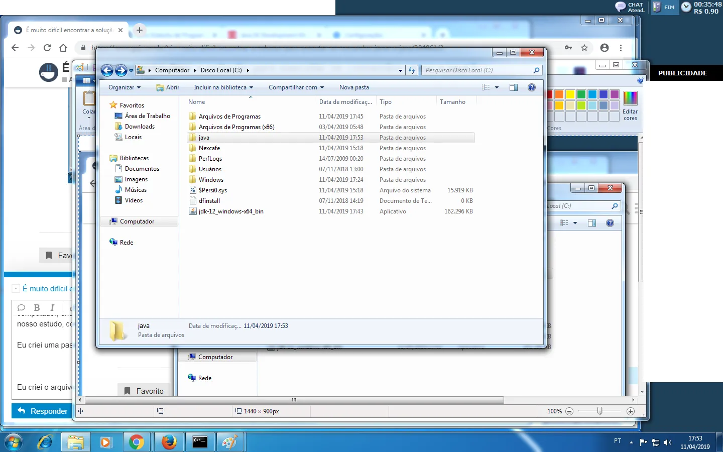 Eu criei uma pasta chamada java dentro de C:\