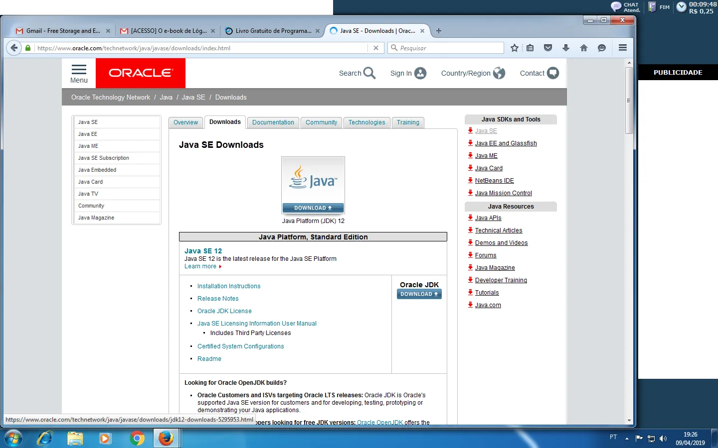 Eu baixei o arquivo jdk-12_windows-x64_bin.exe::