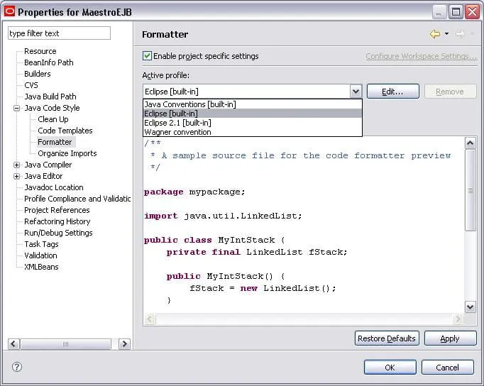 Alguém sabe como posso configurar o eclipse para não quebrar linhas quando formato o código?