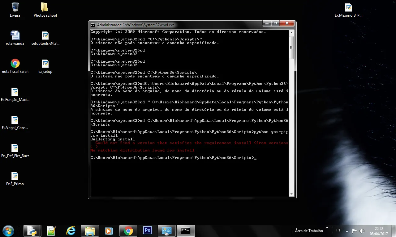 Os arquivos get-pip.py e ez_setup.py estão no diretório … \Python36 ?