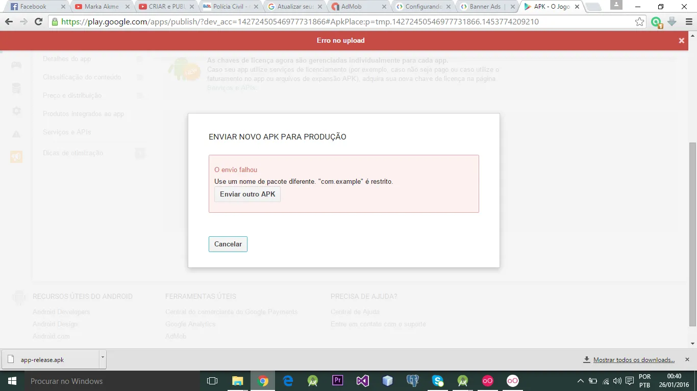 Erro ao publicar app na play store [Android]