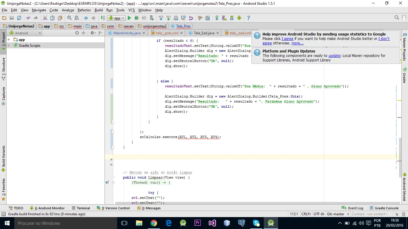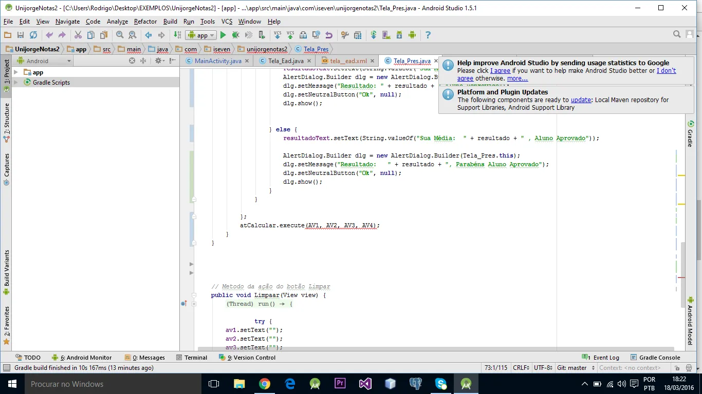 dlg.setMessage("Resultado: " + resultado + ", Parabéns Aluno Aprovado");