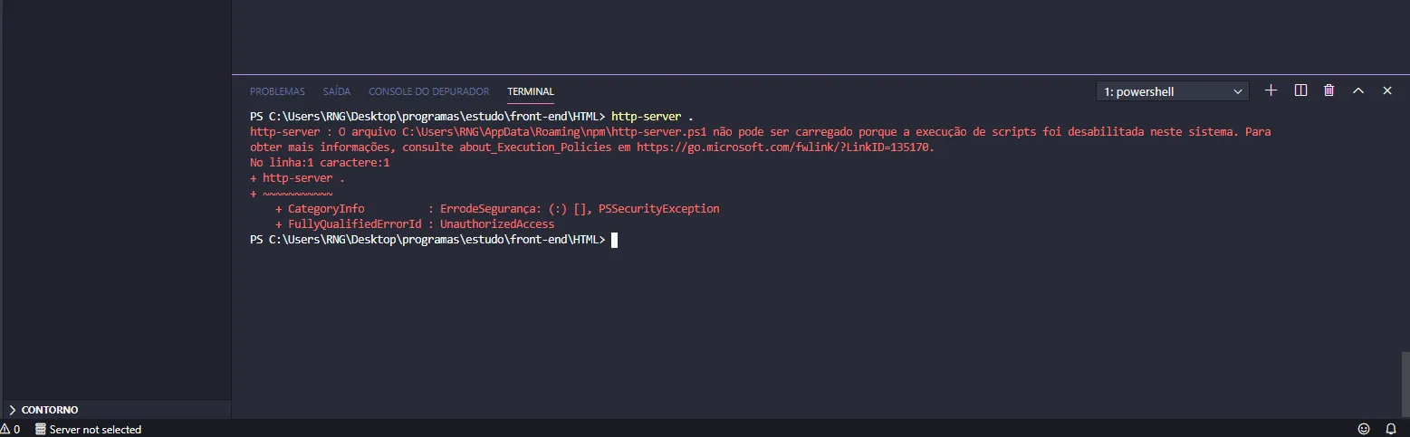 Erro ao tentar executar http-server