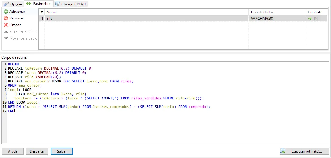 DECLARE meu_cursor CURSOR FOR SELECT lucro,nome FROM rifas;