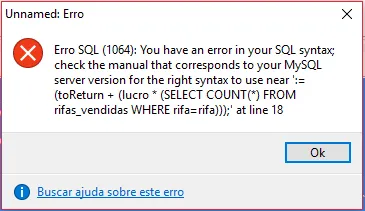 SET toReturn = (toReturn + (lucro * (SELECT COUNT(*) FROM rifas_vendidas WHERE rifa=rifa)));