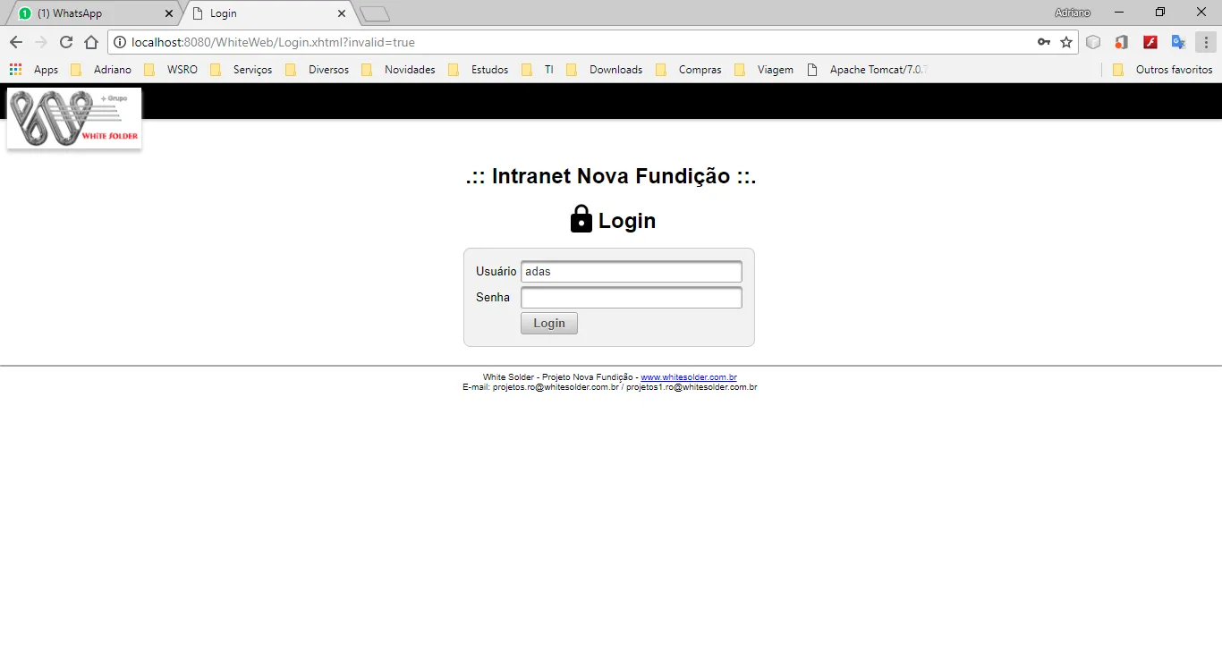 at org.jboss.weld.bootstrap.Validator.validateInjectionPointForDeploymentProblems(Validator.java:370) at org.jboss.weld.bootstrap.Validator.validateInjectionPoint(Validator.java:284) at org.jboss.weld.bootstrap.Validator.validateGeneralBean(Validator.java:137) at org.jboss.weld.bootstrap.Validator.validateRIBean(Validator.java:158) at org.jboss.weld.bootstrap.Validator.validateBean(Validator.java:501) at org.jboss.weld.bootstrap.ConcurrentValidator$1.doWork(ConcurrentValidator.java:61) at org.jboss.weld.bootstrap.ConcurrentValidator$1.doWork(ConcurrentValidator.java:59) at org.jboss.weld.executor.IterativeWorkerTaskFactory$1.call(IterativeWorkerTaskFactory.java:62) at org.jboss.weld.executor.IterativeWorkerTaskFactory$1.call(IterativeWorkerTaskFactory.java:55) at java.util.concurrent.FutureTask.run(Unknown Source) at java.util.concurrent.ThreadPoolExecutor.runWorker(Unknown Source) at java.util.concurrent.ThreadPoolExecutor$Worker.run(Unknown Source) at java.lang.Thread.run(Unknown Source)jun 26, 2018 4:31:34 PM org.apache.catalina.core.ContainerBase startInternal GRAVE: A child container failed during start java.util.concurrent.ExecutionException: org.apache.catalina.LifecycleException: A child container failed during start at java.util.concurrent.FutureTask.report(Unknown Source) at java.util.concurrent.FutureTask.get(Unknown Source) at org.apache.catalina.core.ContainerBase.startInternal(ContainerBase.java:947) at org.apache.catalina.core.StandardEngine.startInternal(StandardEngine.java:258) at org.apache.catalina.util.LifecycleBase.start(LifecycleBase.java:183) at org.apache.catalina.core.StandardService.startInternal(StandardService.java:422) at org.apache.catalina.util.LifecycleBase.start(LifecycleBase.java:183) at org.apache.catalina.core.StandardServer.startInternal(StandardServer.java:770) at org.apache.catalina.util.LifecycleBase.start(LifecycleBase.java:183) at org.apache.catalina.startup.Catalina.start(Catalina.java:657) at sun.reflect.NativeMethodAccessorImpl.invoke0(Native Method) at sun.reflect.NativeMethodAccessorImpl.invoke(Unknown Source) at sun.reflect.DelegatingMethodAccessorImpl.invoke(Unknown Source) at java.lang.reflect.Method.invoke(Unknown Source) at org.apache.catalina.startup.Bootstrap.start(Bootstrap.java:355) at org.apache.catalina.startup.Bootstrap.main(Bootstrap.java:495) Caused by: org.apache.catalina.LifecycleException: A child container failed during start at org.apache.catalina.core.ContainerBase.startInternal(ContainerBase.java:956) at org.apache.catalina.core.StandardHost.startInternal(StandardHost.java:839) at org.apache.catalina.util.LifecycleBase.start(LifecycleBase.java:183) at org.apache.catalina.core.ContainerBase$StartChild.call(ContainerBase.java:1425) at org.apache.catalina.core.ContainerBase$StartChild.call(ContainerBase.java:1415) at java.util.concurrent.FutureTask.run(Unknown Source) at org.apache.tomcat.util.threads.InlineExecutorService.execute(InlineExecutorService.java:75) at java.util.concurrent.AbstractExecutorService.submit(Unknown Source) at org.apache.catalina.core.ContainerBase.startInternal(ContainerBase.java:941) … 13 morejun 26, 2018 4:31:34 PM org.apache.catalina.startup.Catalina start GRAVE: The required Server component failed to start so Tomcat is unable to start. org.apache.catalina.LifecycleException: A child container failed during start at org.apache.catalina.core.ContainerBase.startInternal(ContainerBase.java:956) at org.apache.catalina.core.StandardEngine.startInternal(StandardEngine.java:258) at org.apache.catalina.util.LifecycleBase.start(LifecycleBase.java:183) at org.apache.catalina.core.StandardService.startInternal(StandardService.java:422) at org.apache.catalina.util.LifecycleBase.start(LifecycleBase.java:183) at org.apache.catalina.core.StandardServer.startInternal(StandardServer.java:770) at org.apache.catalina.util.LifecycleBase.start(LifecycleBase.java:183) at org.apache.catalina.startup.Catalina.start(Catalina.java:657) at sun.reflect.NativeMethodAccessorImpl.invoke0(Native Method) at sun.reflect.NativeMethodAccessorImpl.invoke(Unknown Source) at sun.reflect.DelegatingMethodAccessorImpl.invoke(Unknown Source) at java.lang.reflect.Method.invoke(Unknown Source) at org.apache.catalina.startup.Bootstrap.start(Bootstrap.java:355) at org.apache.catalina.startup.Bootstrap.main(Bootstrap.java:495)jun 26, 2018 4:31:34 PM org.apache.coyote.AbstractProtocol pause INFORMAÇÕES: Pausing ProtocolHandler [“http-nio-8080”] jun 26, 2018 4:31:34 PM org.apache.coyote.AbstractProtocol pause INFORMAÇÕES: Pausing ProtocolHandler [“ajp-nio-8009”] jun 26, 2018 4:31:34 PM org.apache.catalina.core.StandardService stopInternal INFORMAÇÕES: Stopping service [Catalina] jun 26, 2018 4:31:34 PM org.apache.coyote.AbstractProtocol destroy INFORMAÇÕES: Destroying ProtocolHandler [“http-nio-8080”] jun 26, 2018 4:31:34 PM org.apache.coyote.AbstractProtocol destroy INFORMAÇÕES: Destroying ProtocolHandler [“ajp-nio-8009”] jun 26, 2018 4:31:34 PM org.apache.catalina.loader.WebappClassLoaderBase clearReferencesThreads ADVERTÊNCIA: The web application [WhiteWeb] appears to have started a thread named [weld-worker-1] but has failed to stop it. This is very likely to create a memory leak. Stack trace of thread: sun.misc.Unsafe.park(Native Method) java.util.concurrent.locks.LockSupport.park(Unknown Source) java.util.concurrent.locks.AbstractQueuedSynchronizer$ConditionObject.await(Unknown Source) java.util.concurrent.LinkedBlockingQueue.take(Unknown Source) java.util.concurrent.ThreadPoolExecutor.getTask(Unknown Source) java.util.concurrent.ThreadPoolExecutor.runWorker(Unknown Source) java.util.concurrent.ThreadPoolExecutor$Worker.run(Unknown Source) java.lang.Thread.run(Unknown Source) jun 26, 2018 4:31:34 PM org.apache.catalina.loader.WebappClassLoaderBase clearReferencesThreads ADVERTÊNCIA: The web application [WhiteWeb] appears to have started a thread named [weld-worker-2] but has failed to stop it. This is very li