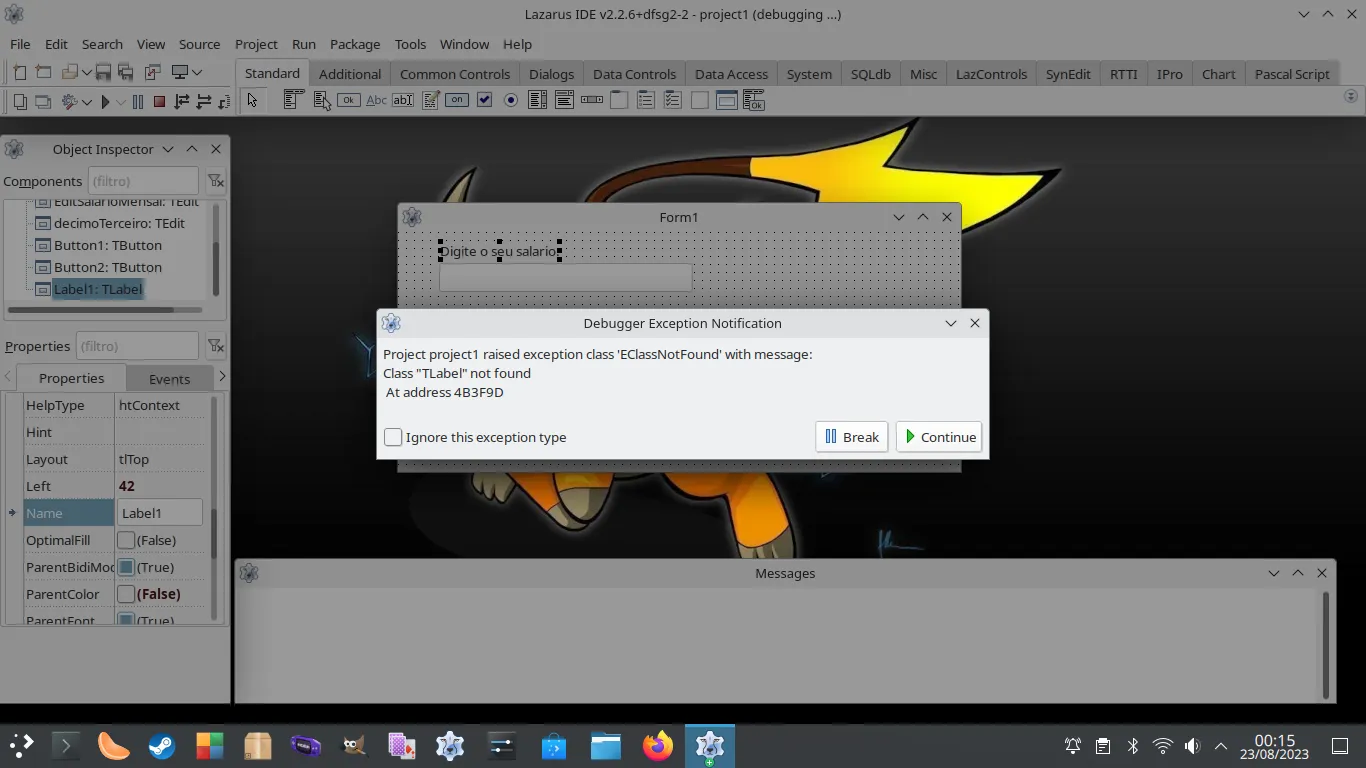 o labell no lazarus dá erro