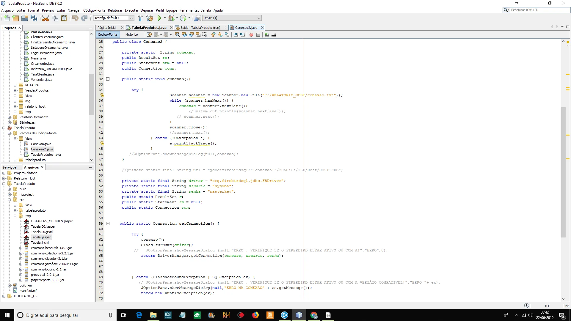 private static String caminho = jdbc:firebirdsql:localhost/3050:C:/TSD/Host/HOST.FDB;