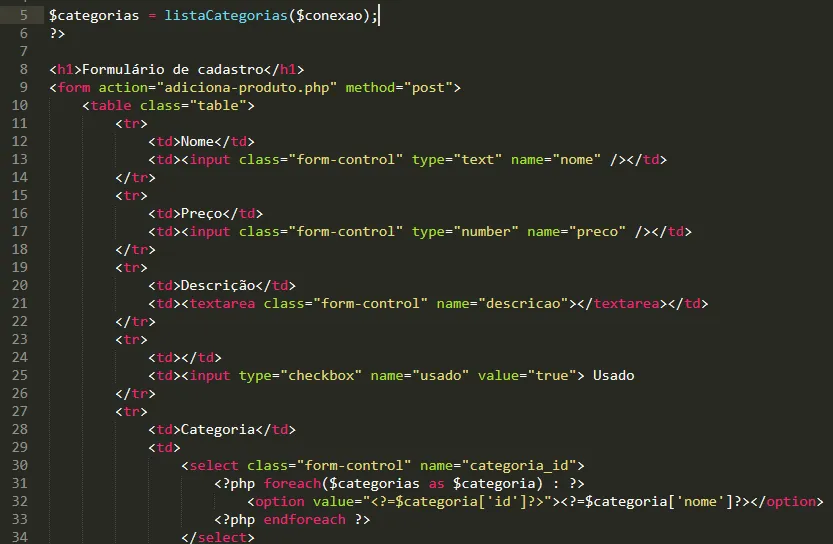 Eu estou estudando desenvolvimento em PHP e estou fazendo uma rotina que lista as categorias dos produtos dentro de uma ComboBox, vou postar aqui o código que eu criei e o erro que da ao carregar a pagina se alguém souber me ajudar com o erro eu agradeço.