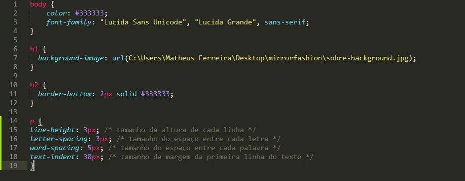 Pessoal estou tentando colocar espaçamento no meu site porém quando atualizo na web o texto fica desconfigurado.