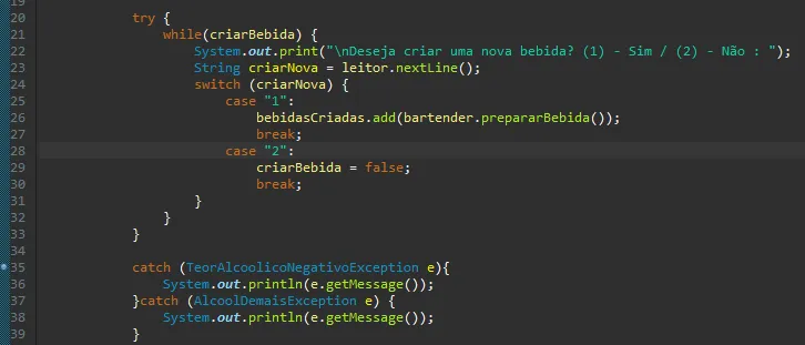 Mas nesse caso são só duas opções mesmo, criar ou nao criar. Pra incluir alguma coisa nesta bebida outra classe faz isso. (Nessa aqui)