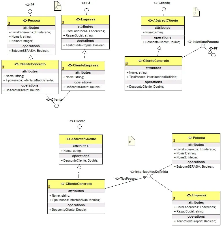 Classe OpVenda … essa classe tem um cliente que ira comprar alguma coisa, para essa classe oq importa é que quem vai comprar seja um cliente. Logo terei OpVenda.DefineCliente(iCliente cliente). e terei um OpVenda.DefineCliente.cliente_ID.