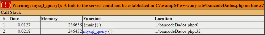 A conexão se mostra normal mas ao chamar o método “mysql_query” tenho o seguinte erro: