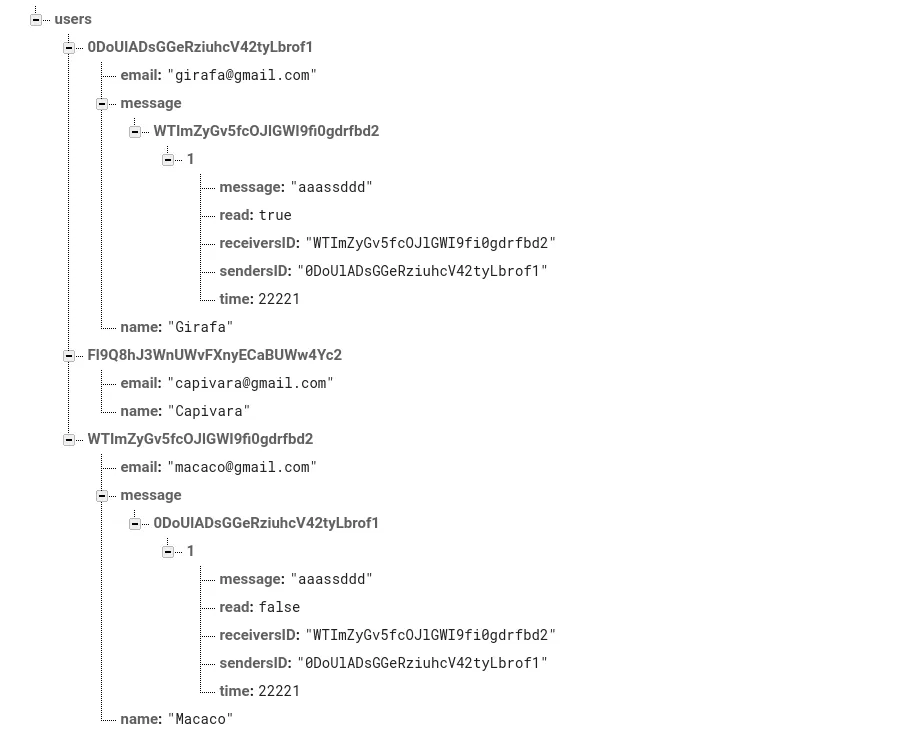 myRef.child(message.getSendersID()).child("message").child(message.getReceiversID()).child("1").setValue(message);