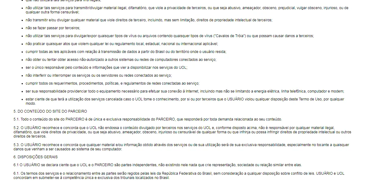 Formulario de termos e serviços