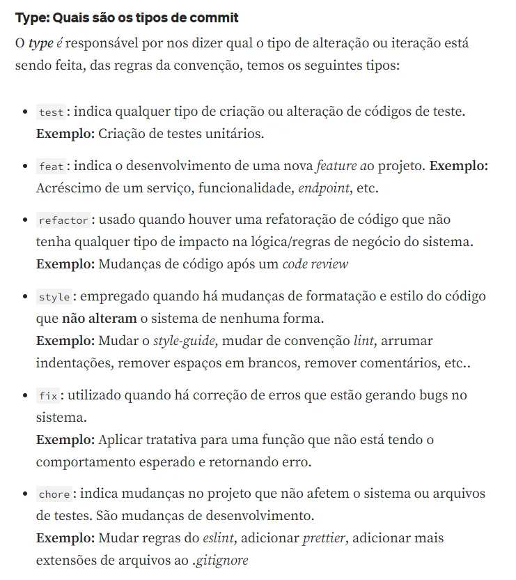 só aceita se na mensagem do commit, tiver uma destas type com : feat: inclusão de novo campo no formulário de login