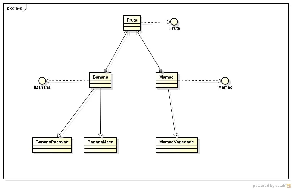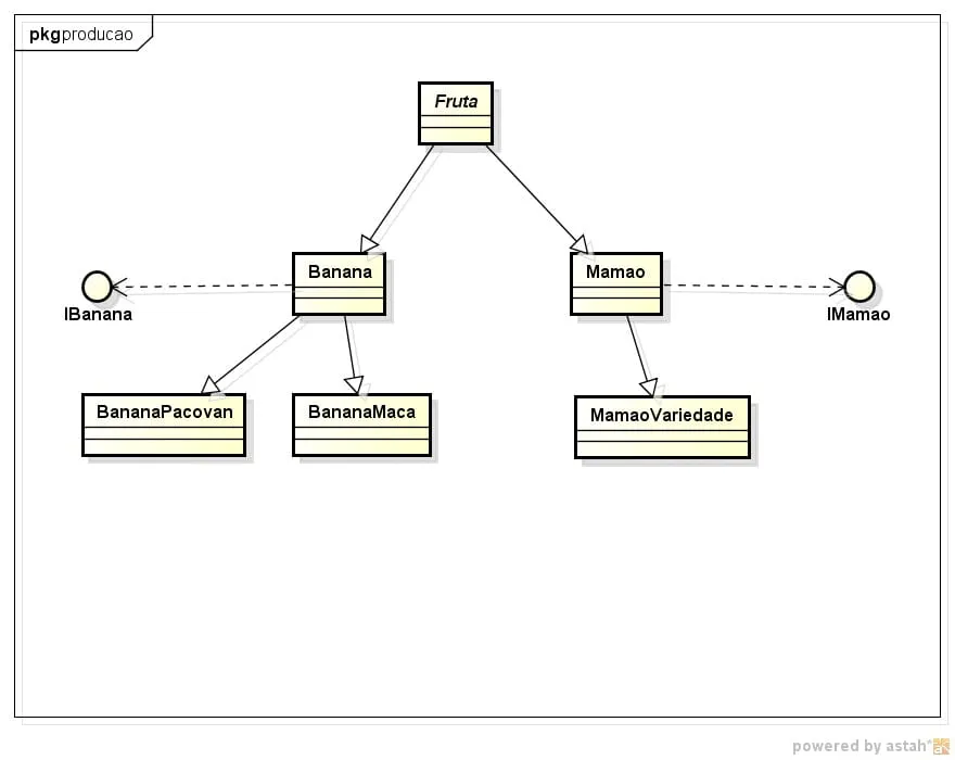 Por falar em estruturação,você inverteu a seta que indica que a classe Banana herda de fruta( e para as demais).