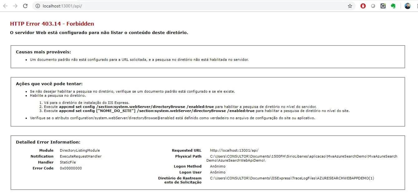 Alguém sabe o que pode ser? como eu faço para exibir uma tela qualquer para eliminar este erro do 403?
